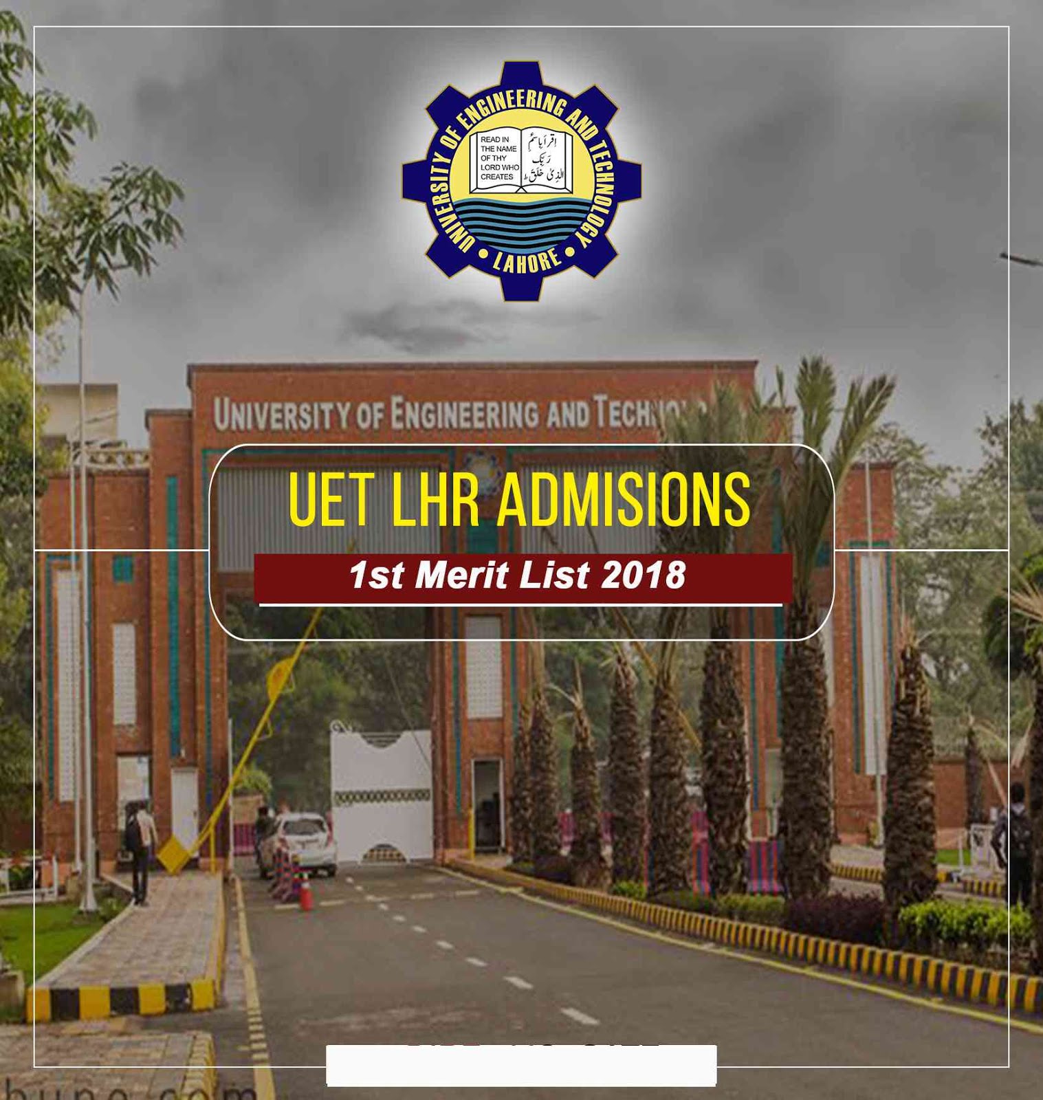 The University of Engineering and Technology Lahore has announced its first Merit List 2018 for admission in under graduate programs.